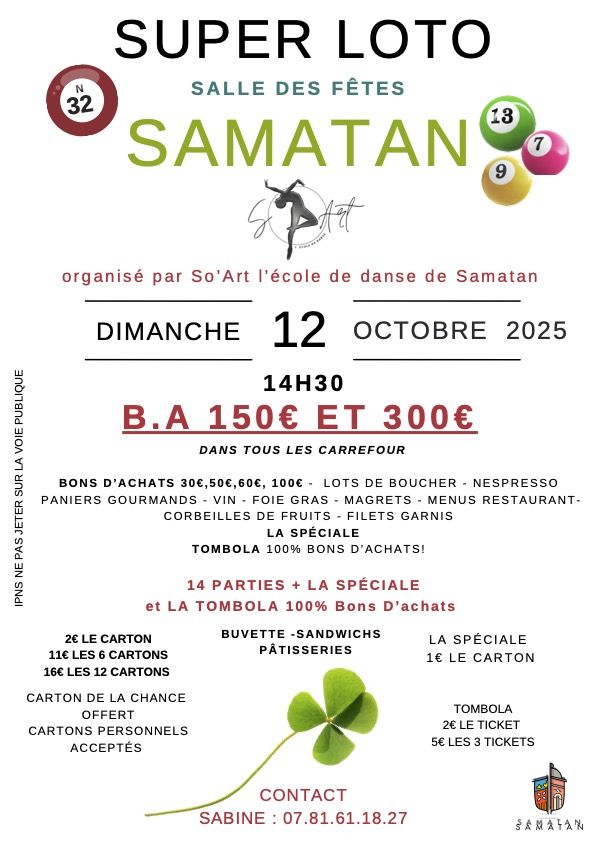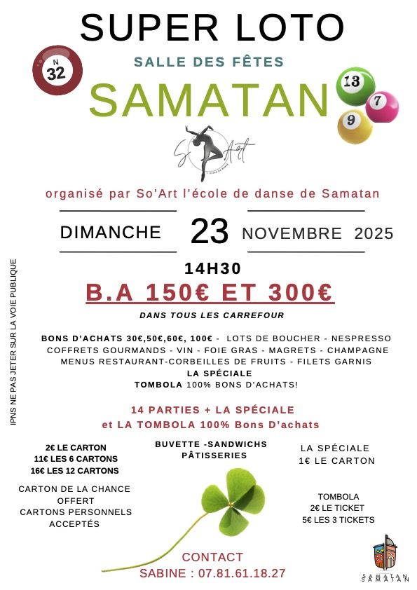 Inscription obligatoire à la médiathèque au 05 62 07 42 97 ou par mail : mediatheque@samatan-gers.com
