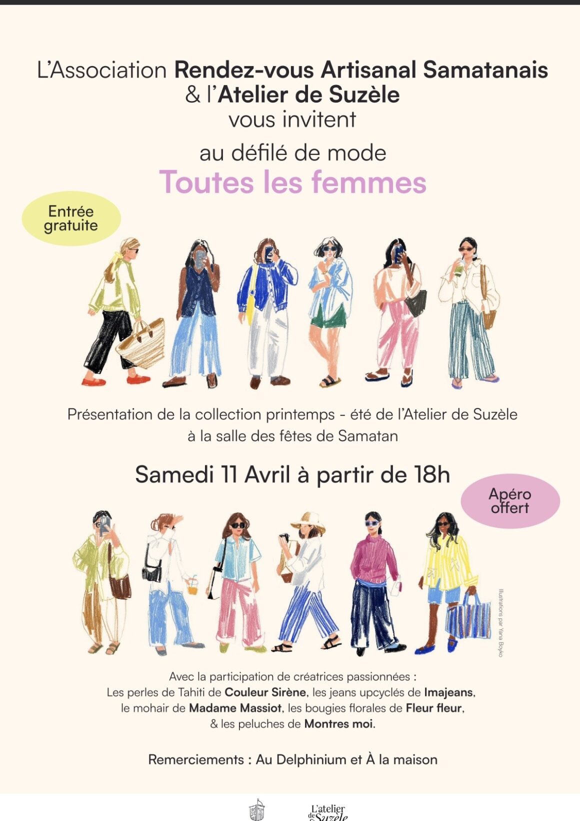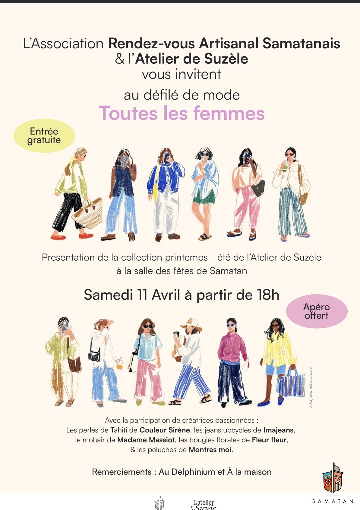 L’association Rendez-vous artisanal samatanais et l’Atelier de Suzèle organisent « Toutes les femmes », un défilé de mode de présentation de la collection printemps/été de l’Atelier de Suzèle.