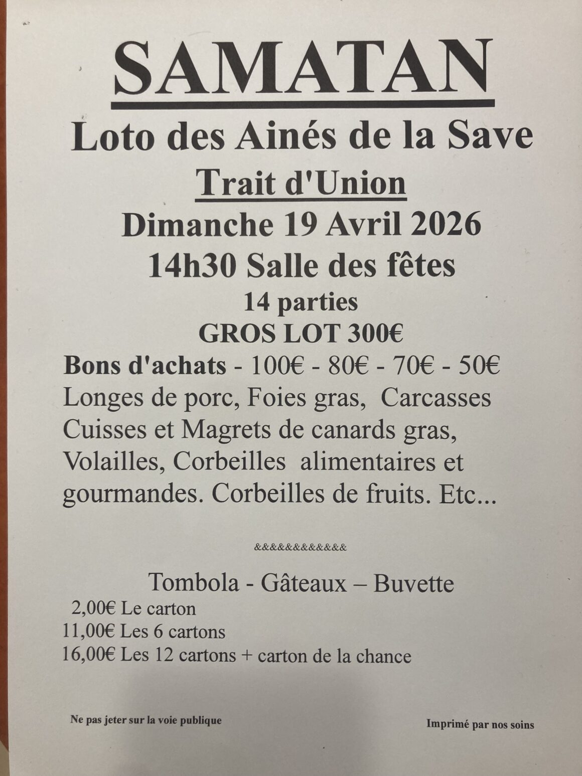 10 février 2026 | Loto du Twirling club samatanais